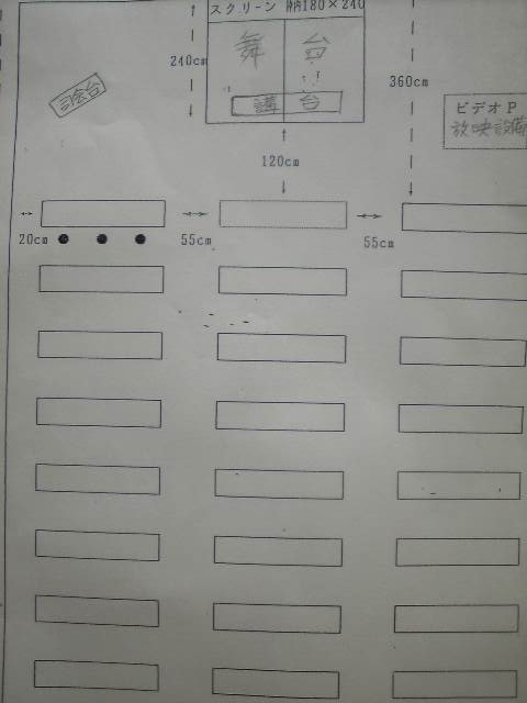 有关「复旦之夜」16:00-18:00会场的设计,先后有陈希珠会議司仪提出了「座位草图」。总策划薛倩校友用POWERPOINT做了「三个方案」。根据薛倩总策划和陈希珠司仪的设计,「复旦之夜」会務委員会总协调陈颂豪常务副秘书长于2008年10月18日(星期六)下午与「ゆうぽうと(U-PORT)東京簡易保険会館」具体商定了方案。据会務委員会陈颂豪总协调介绍:会场为3列,8排,每排3桌,每桌3人。第一排前面的空间是舞台,舞台中间是高脚演讲台,傍边是一个司会台,各一个话筒。其后面是布景。放映设备在舞台边上。万一超过70人,还可以变动前面3排校方人员以外的桌子,改为椅子,以应对人数的增加。特此连络。