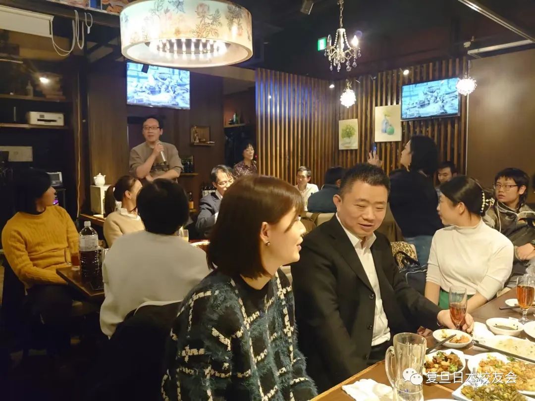 聚会的内容十分轻松,校友们随意入座,和新朋友老朋友畅所欲言。在校友会会长唐振尧先生发言后,每位校友都站起来做15秒的简短自我介绍。不得不说复旦大学日本校友真是卧虎藏龙,一番简短的自我介绍中就能看出,还真是有不少低调的大牛。不仅有商界大咖公司高管,也有文化使者,也有长期资助建设中国希望小学的爱心校友,更有长年为中日友好架起友谊桥梁的教授学者。通过这一轮自我介绍,校友们互相增进了解,许多人也迫不及待地和自己感兴趣的校友,志同道合的校友攀谈了起来。