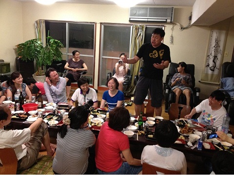 15日下午,校友们陆陆续续来到度假地,由饭店负责人为我们安排房间,部分校友和家属去海边游玩,部分校友马不停蹄地为大家准备晚餐。刘大卫亲自驾车,蔡薇,于進,李剑,杜颖富,朱银妹等一起不知疲倦地到附近的超市购物,准备烧烤所需。夜幕降临,校友们和校友家属都亲自动手在餐厅里准备晚餐,另一部分则在院子里生火烧烤。烧烤,合口的凉菜,各种中国酒,日本酒和饮料给大家欢声笑语,其乐融融。
