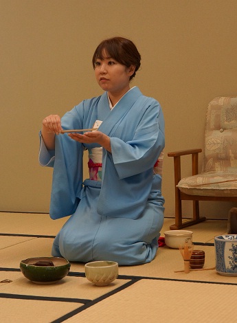 茶文化讲座第一部,由佐伯和香奈小姐用流利的汉语传教日本茶道,并配备高级茶具和日本点心,让大家品赏。里千家茶道师佐伯和香奈,自幼习茶,12岁开始正式练习茶道。佐伯通过茶道体会到茶心与人心共通,遂立志将茶道作为人生的主干。佐伯大学毕业后,去茶的发祥地中国留学,在天津商科大学里千家短期大学学习日本茶道、中国文化、中国语。回到日本后,她以茶会友,在各地开设茶道讲座、举办茶会,一心一意传达“茶道就是关爱之心”的理念,并在这个过程中结交了很多中国朋友。