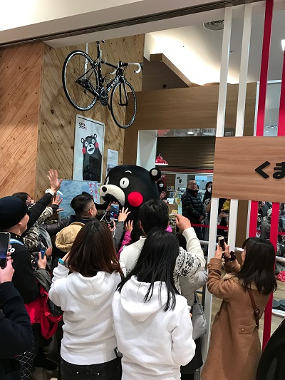 醉完庭院,我们第二站来到了位于熊本熊广场(日语)一楼的熊本熊部长的办公室。有幸当天部长亲临办公室指导工作,撩起袖子亲自示范了一整套萌萌哒“部长体操”。只是那天大朋友和小朋友的真爱粉太多,我们只是看到了“部长体操”的背后版。可背后版也蠢萌蠢萌依旧,擦擦鼻血,依旧不忘在部长离场前来个近距离的身体接触(握手)。
