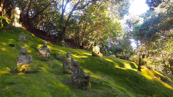 相传六百多年前(日本南北朝时代),中国一名叫东陵永兴(東陵永璵)的僧人从宁波远渡而来,来到九州熊本的金山峰,在这里建立了云严禅寺(雲巌禅寺)。(https://ja.wikipedia.org/wiki/雲巌禅寺)。三百多年前,晚年的宫本武藏来到此处,在灵严洞(霊巌洞)内铸成了 “二天一流”的兵书《五轮书》(『五輪書』)。