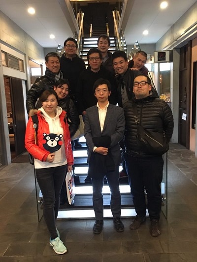当晚在スシロ吃完晚饭,在乔同学的牵线下,复旦九州校友回当晚有幸与九州大学MBA熊本会会长就任庆功宴,“并与熊本商界代表团就九州发展,进入了深入交流”。