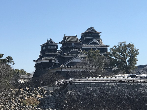翌日,熊本城。(https://ja.wikipedia.org/wiki/熊本城)。2016年4月,作为世界遗产的熊本城在地震中受损,目前仍处于修复状态,并不能进入城内参观。(据新闻,天守阁将在3年后修复完成,并在2036年前完成熊本城所有的修复工作。)