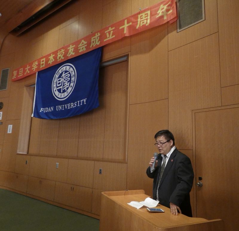 日本校友会会长刘诚在致辞中表示:日本校友会在成立十周年之际,注册校友已经达到400多人,成立了关西和九州分会,规模达到了一个高峰。在复旦世界校友大会上,日本校友会第一次被评为优秀校友会。吴晓虹和孙冉还被评为了优秀校友。校友会的发展与母校的支持和广大校友的团结和奉献分不开的。