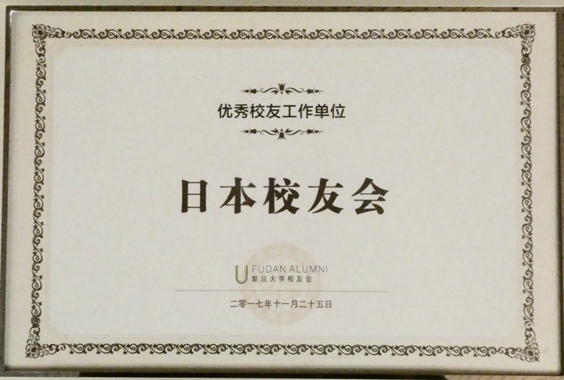 为了庆祝日本校友会成立十周年,复旦大学校友会也发来了贺信,贺信中写道:“日本校友会成立十周年来,各届理事会团结凝聚广大在日校友,组织建设规范有序,校友活动丰富多彩,每年的赏樱会和忘年会已成为在日各校友会社团中规模最大的活动之一。成为在日老中青复旦人的交流信息联络感情的复旦之家。”