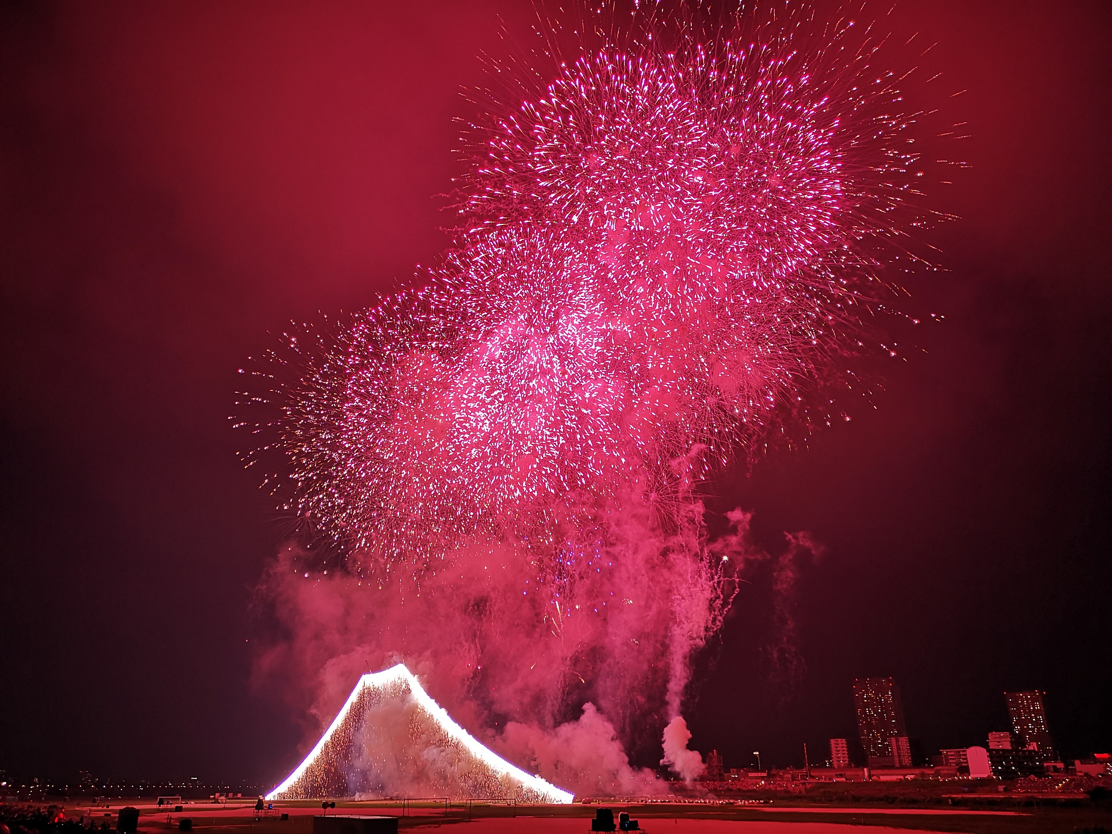 江户川花火看富士,而今年的富士主题是樱花烂漫花吹雪,果然精彩。